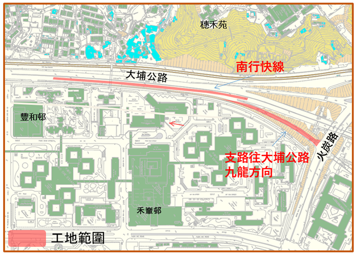 - 年初二早上5時 開始封閉 由豐和邨至火炭路大埔公路(沙田段)南行快線 (見圖一) 及